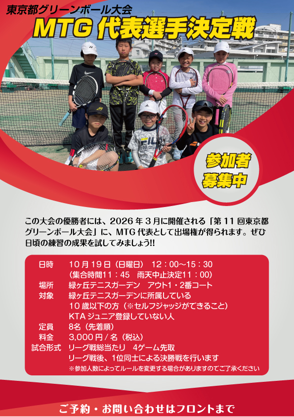 「第10回東京都グリーンボール大会」に、MTG代表として出場権が得られます。
