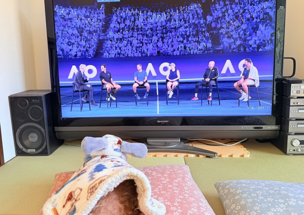 和室のテレビで愛犬と一緒に、2時間以上じっくり楽しみながら観戦しました。
