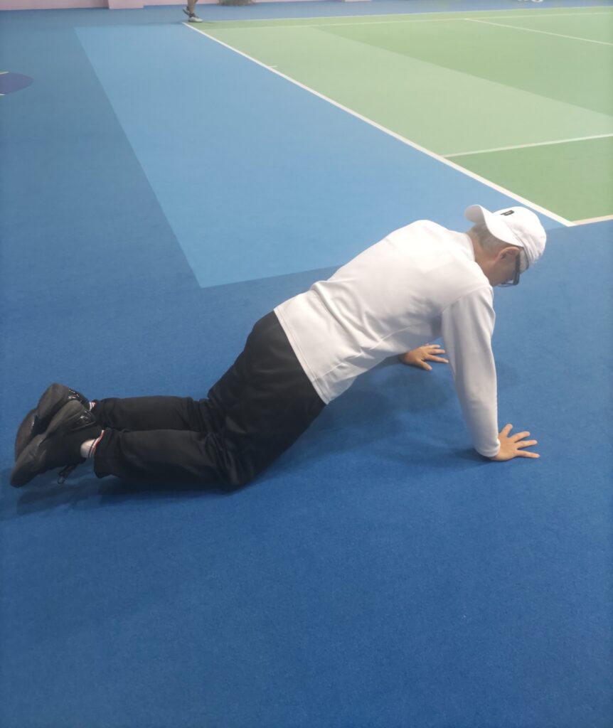 ただ、本来の腕立て伏せではなく、膝をついた状態での腕立てです。