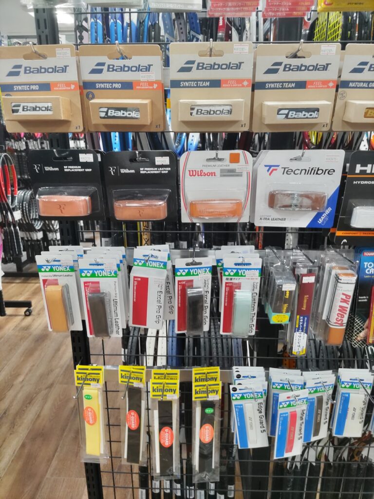 そこで急いでテニスサポートセンターへ行き、店長さんに合うものを選んでもらい、巻き替えまでお願いしました。